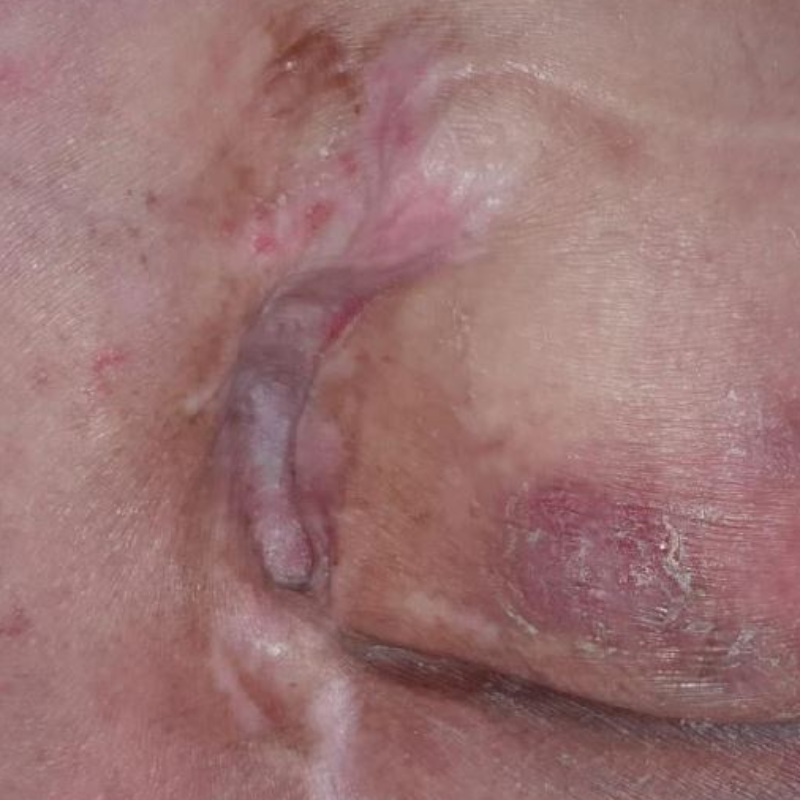 Se observa cómo el esfacelo, el tamaño y la profundidad de la lesión van disminuyendo progresivamente. Los bordes y la piel perilesional se encuentran en buen estado, favoreciendo el avance de la cicatrización. A lo largo de la evolución de la lesión, la herida presenta hipergranulación del lecho. Aspecto que se aborda cambiando el tratamiento de la lesión. El PS fue desplazado a otro puesto, sin poder terminar el seguimiento del caso. Sin embargo, se continuó con el tratamiento pautado consiguiendo una cicatrización de la lesión en febrero del 2022.